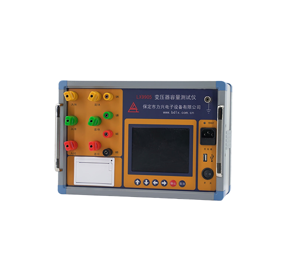 • 容量的测量:仪器内置可充电锂电池,本身可输出三相正弦波逆变电源,输出电压自动调节,具有软启、软停功能,无需任何外部电源可实现配电变压器容量的测量和型号的判断,同时显示变压器阻抗电压和折算到额定温度、额定电流下的负载损耗。